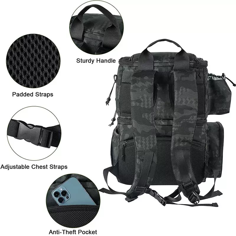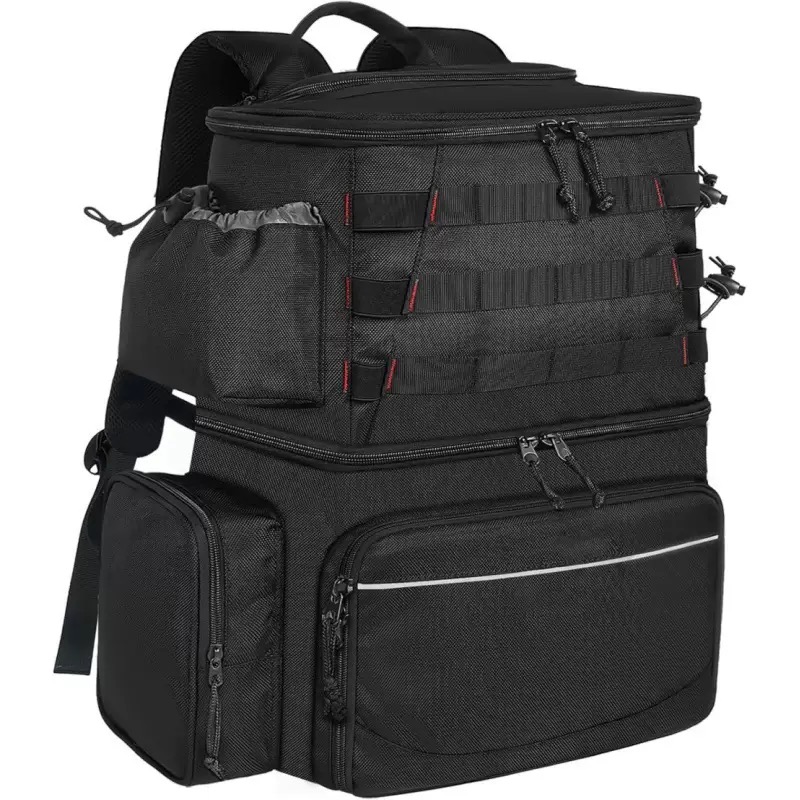 De Angler Pro is gemaakt van waterdicht en scheurbestendig materiaal en zorgt ervoor dat uw uitrusting beschermd blijft onder alle weersomstandigheden. De intelligent ontworpen compartimenten omvatten speciale hoezen voor hengels, meerdere vakken voor tackleboxen, een geïsoleerd koeltasje voor aas of drankjes, en zelfs een verborgen waterdicht vak voor je telefoon of sleutels.