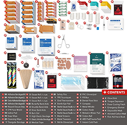 Uitgebreide componenten: Wondverzorging: verband, gaasjes, plakband, antiseptische doekjes